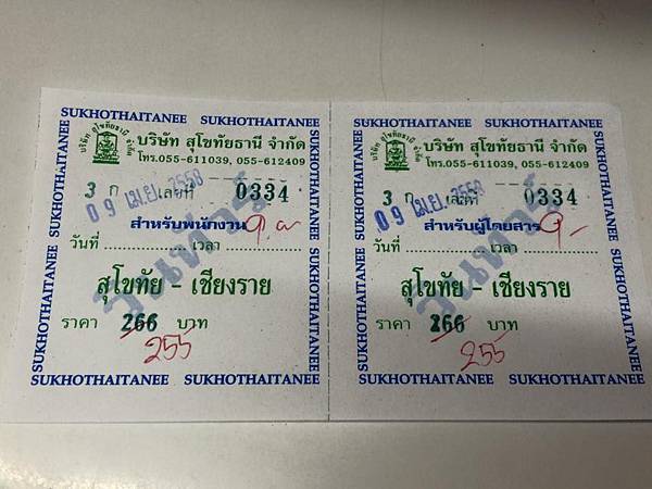 素可泰—清萊的車一天只有這三班,車程約9小時,票無法事先預訂,票價255泰銖,車上並沒有滿,所以我一個人做兩個位置,椅子也算舒適\(^o^)/
