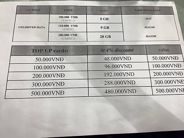 到越南胡志明市的廉價航空搭越捷航空是很便宜的,17買來回含20公斤行李機票含稅不到NT.6000,ㄧ出機場有兩家電信公司,現在只需要上網就可以打網路電話,所以只辦了wife SIM card,方案有很多種,10天17買的是vinaphone 一個月可無線上網,5G內是高速上網,超過5G還是可以上,只是網速變慢而已,VND.10萬,試用10天結果是都很順,如果不K劇是綽綽有餘的^_^