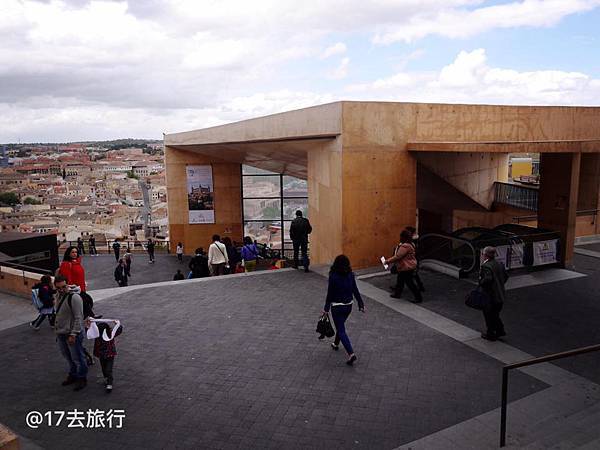 托雷多Toledo 裡古色古香的民宅讓整個城鎮顯得雅靜古樸,很適合徒步觀光,但因為城鎮建築於山坡上,道路都是上上下下的山坡路,走久了還蠻傷膝蓋的,當17在閒晃的時候,看到這棟外觀很像捷運出口的建築,一走進去,一個接一個的手扶梯由山頂上可以直接到山腳下,出了最下層的手扶梯就離聖馬丁橋Puente de San Martin不遠囉🤔