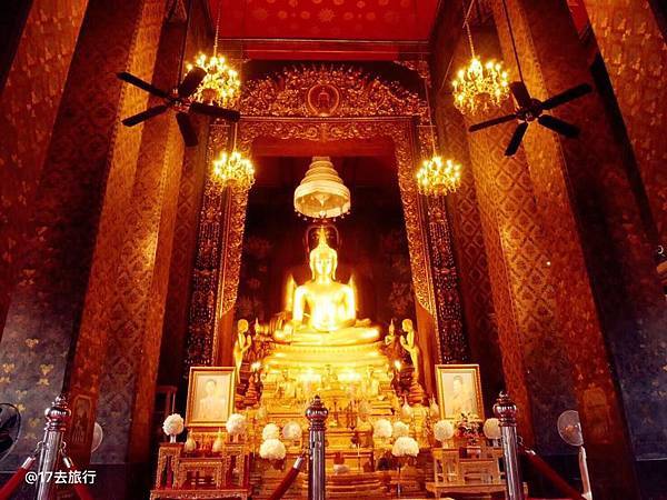 ❤️,主寺廟供奉著一個金色的大佛。這個寺廟也是幾個皇室出家的寺廟,在這第一次看到泰皇年輕時的照片,第一眼覺得:蠻帥的呀