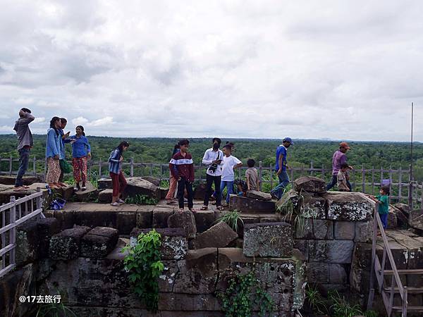 🐘。本來應該是由正面樓梯上去的,但攀爬不易,在後面有一個木樓梯可以上頂。柬埔寨人阿婆小孩都爬上來真是無比虔誠